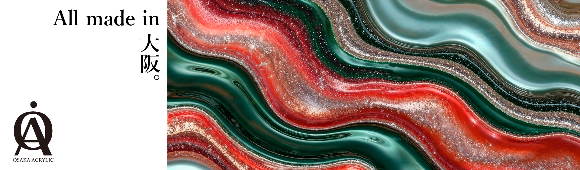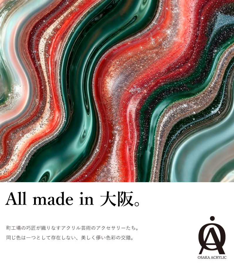 All made in 大阪、町工場の巧匠が織りなすアクリル芸術のアクセサリーたち。同じ色は一つとして存在しない、美しく儚い色彩の交錯。