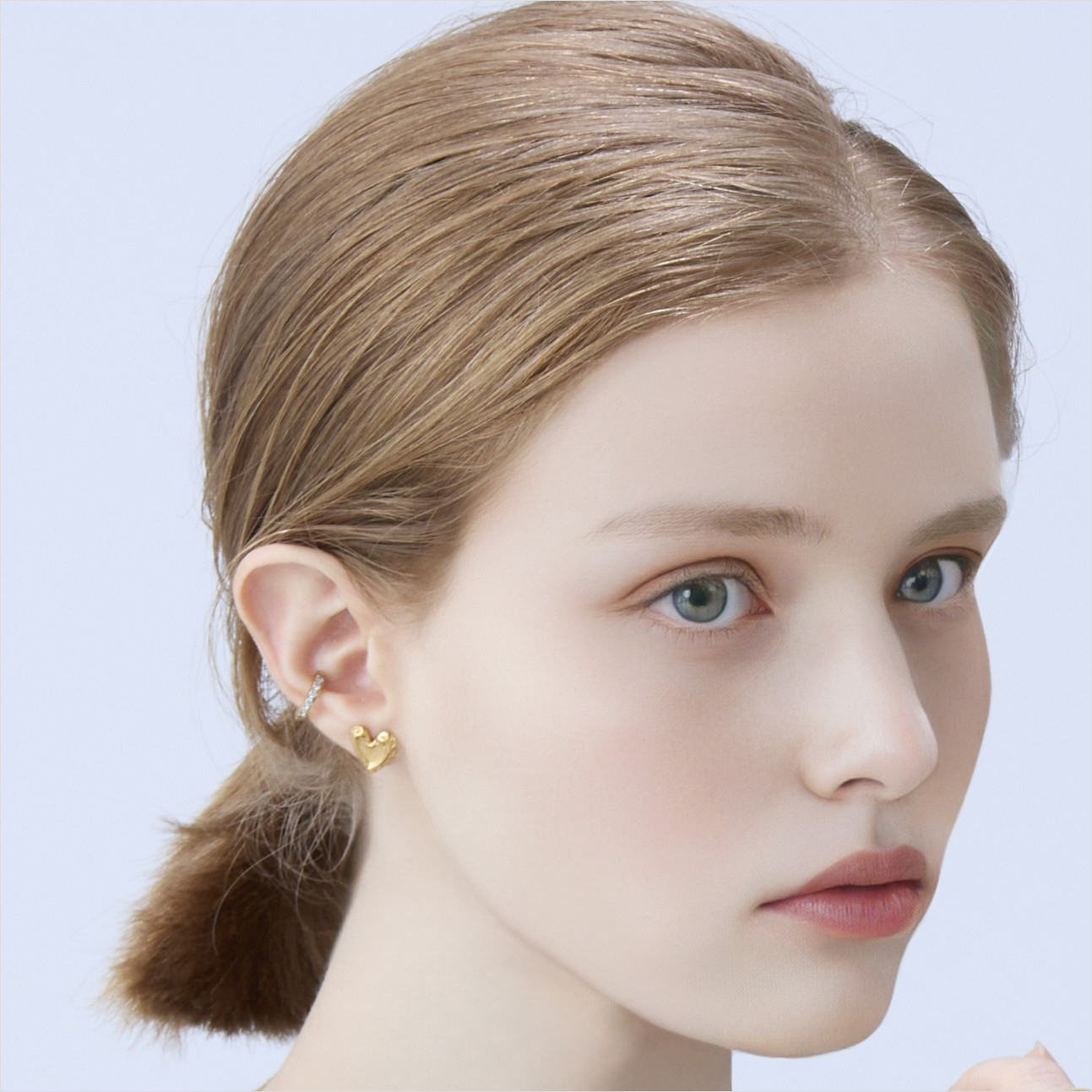 特徴的なデザインのハートをマットカラーで少し大人っぽく仕上げたピアス。