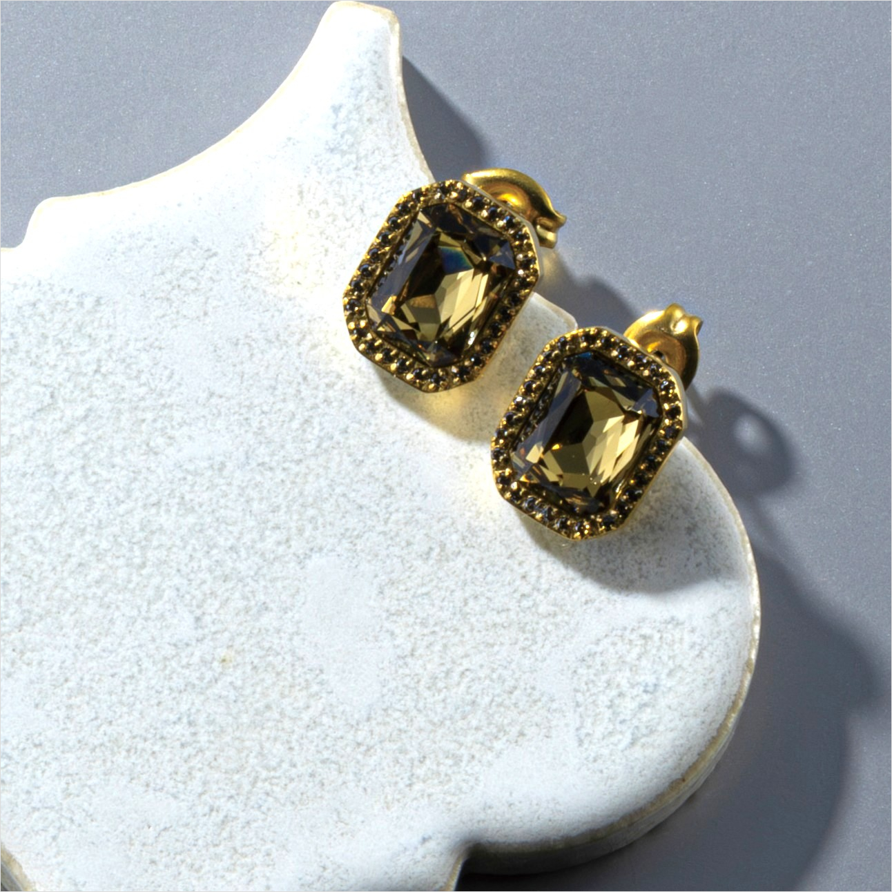 サイドの石をあえてブラックダイヤモンドカラーにした、モードな輝きを放つビジューピアス。