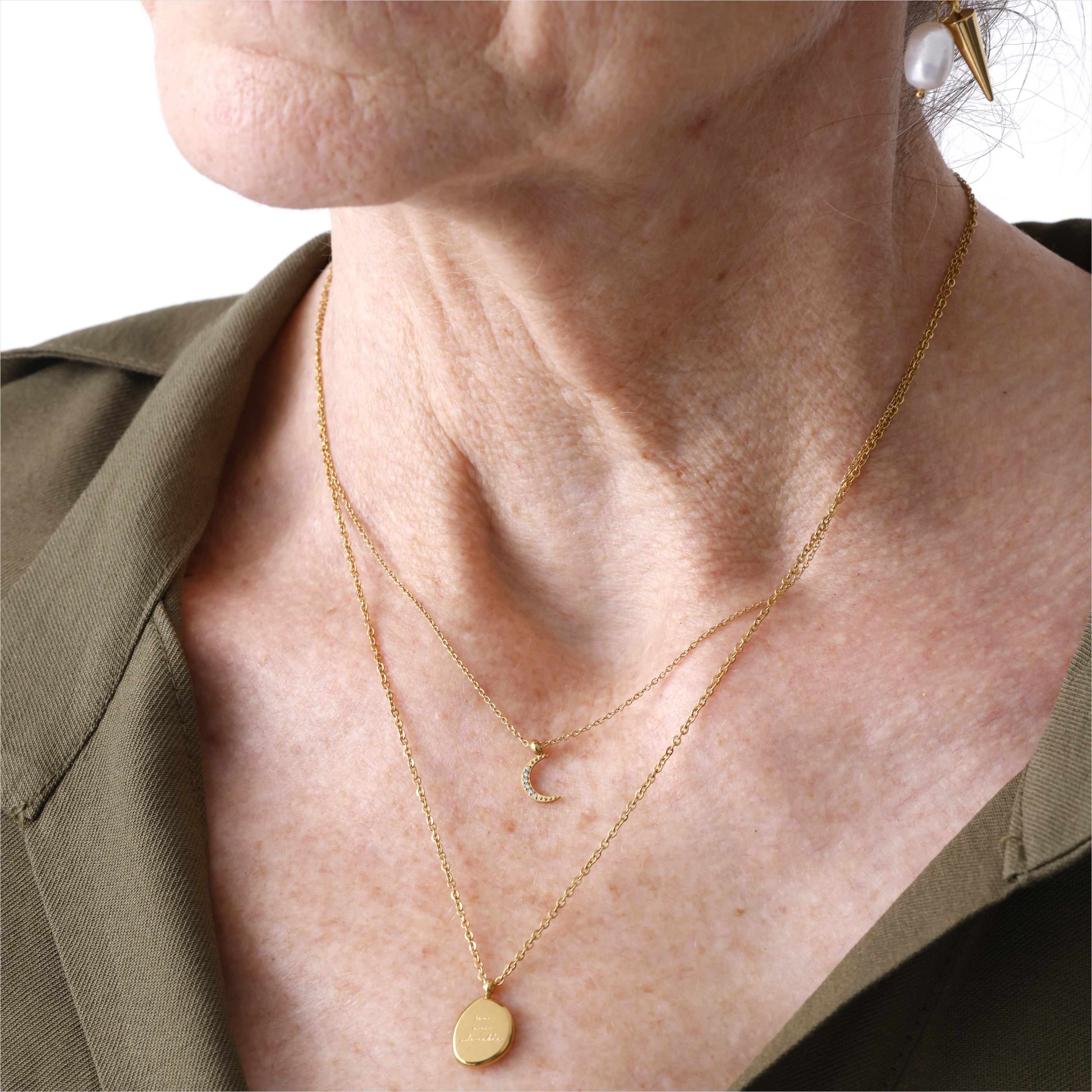 月をモチーフにしたビジューネックレス。
