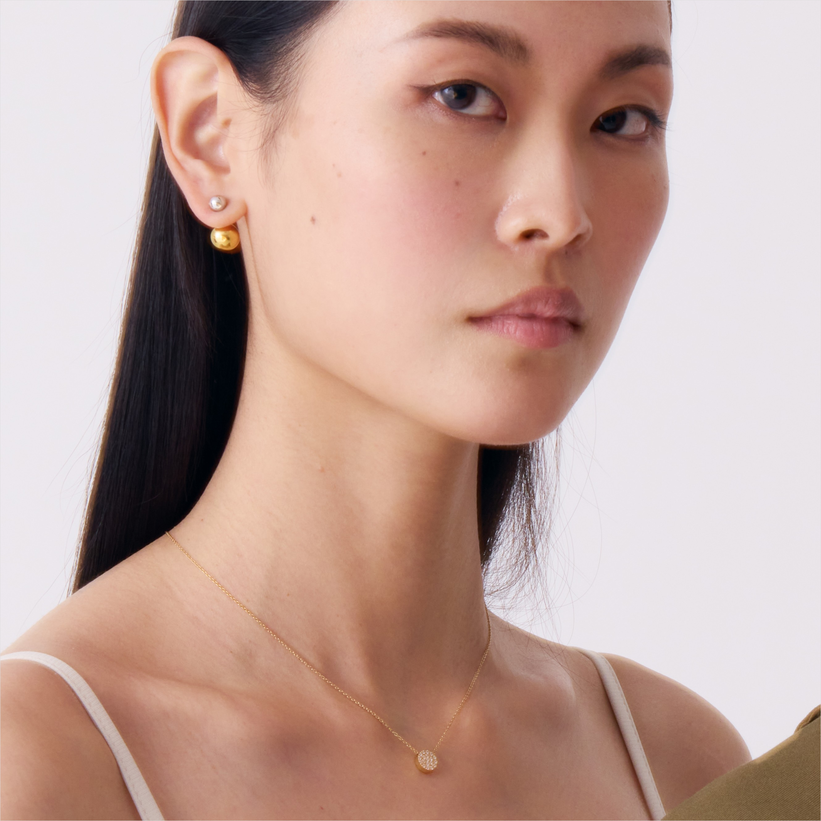サークルパーツの中に小さなキュービックジルコニアを敷き詰めたビジューなネックレス。