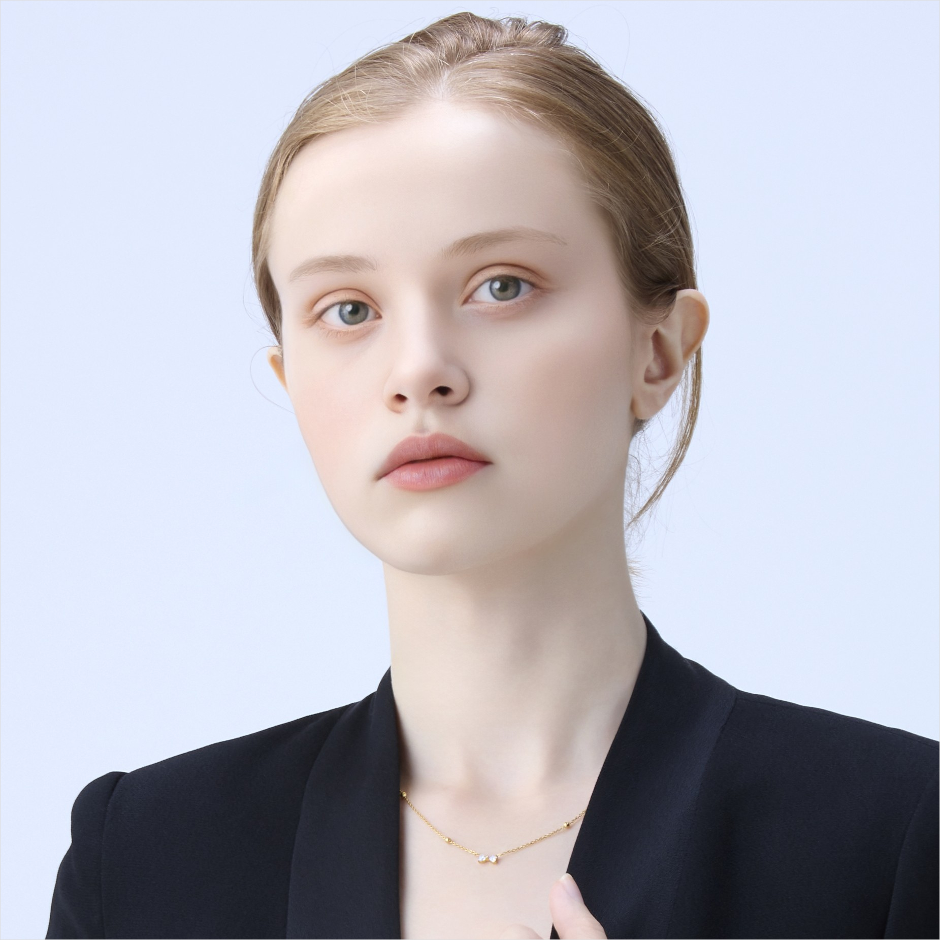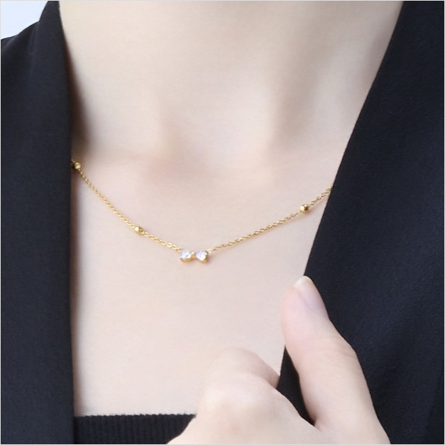 トップの小さなキュービックジルコニアのリボンがアクセントのシンプルネックレス。