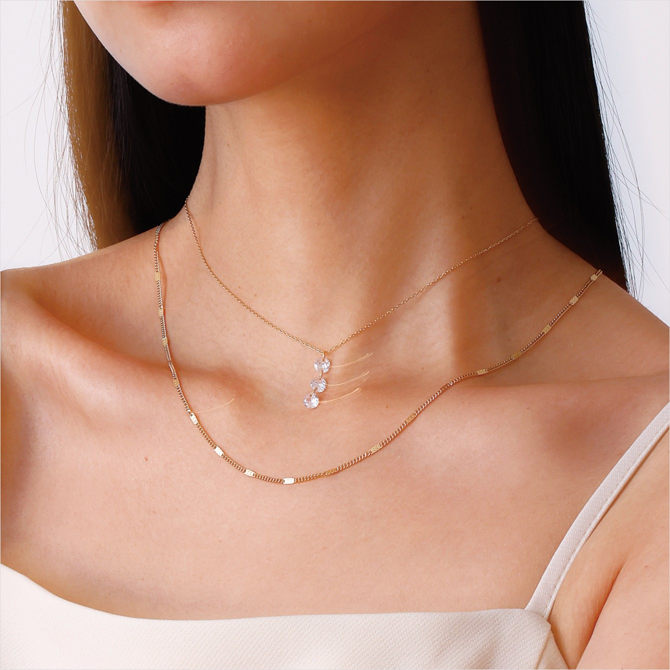 1本でシンプルに。また重ね付けもおすすめのデザインチェーンネックレス。