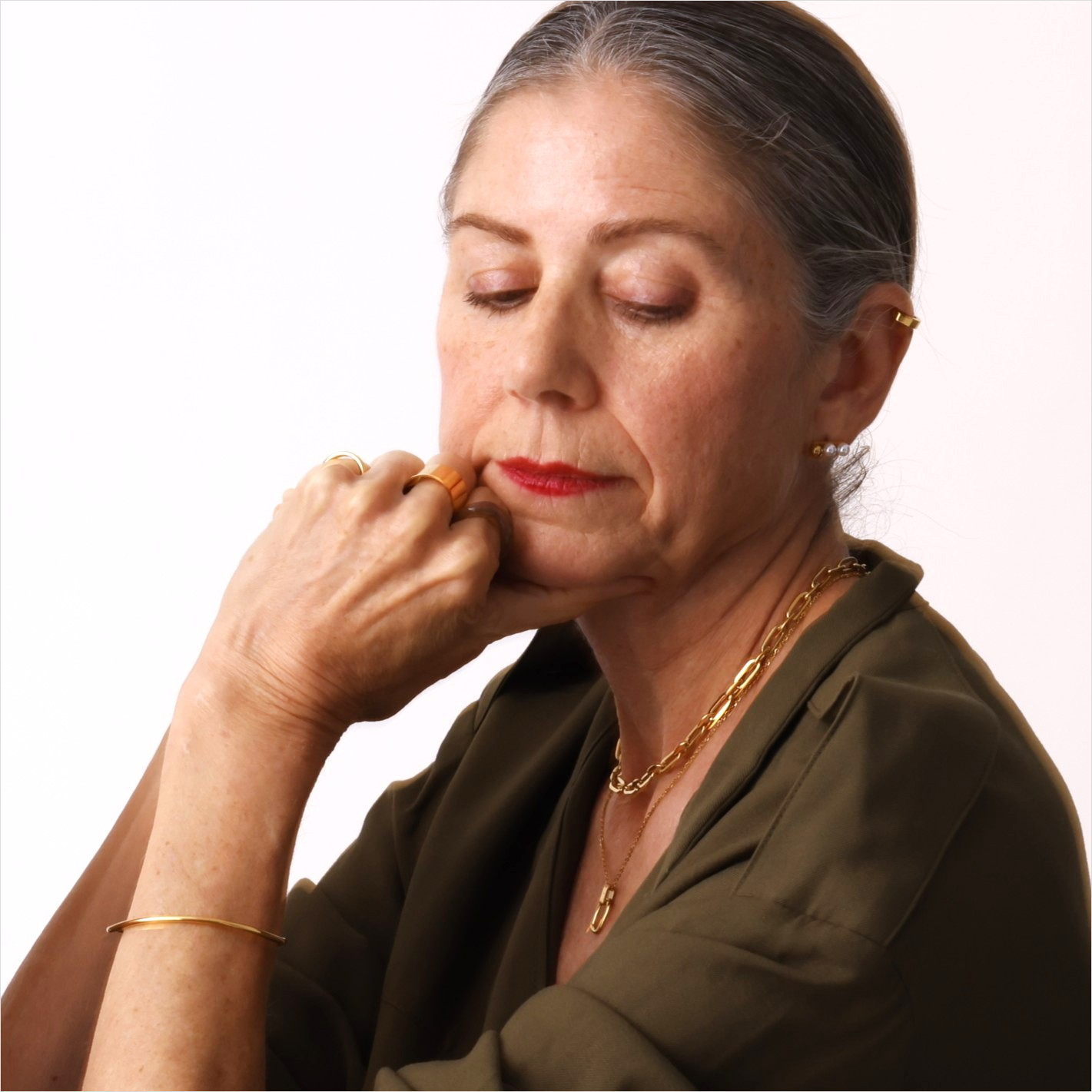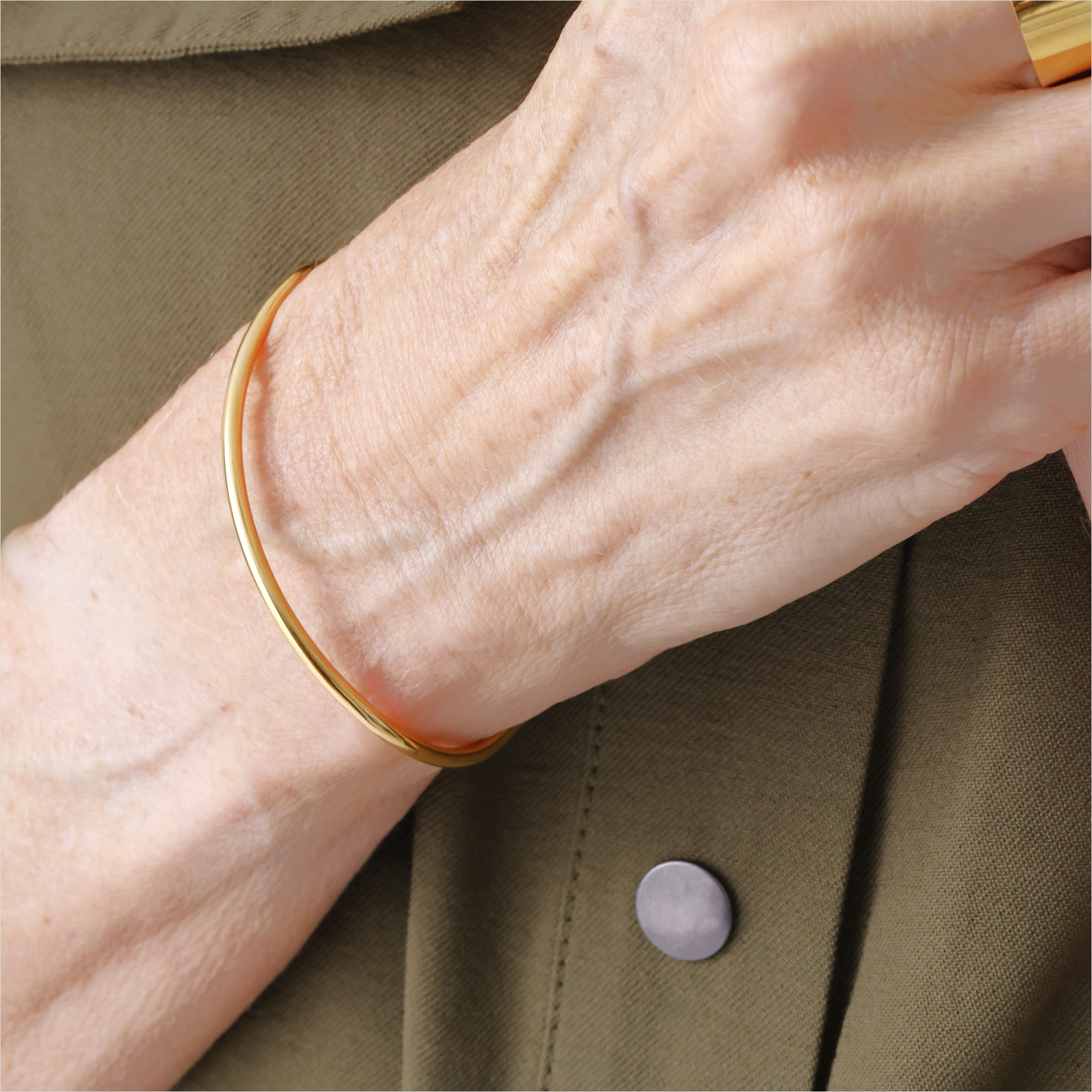 カーヴィーなラインがコーディネートのアクセントになるシンプルなバングルブレスレット。