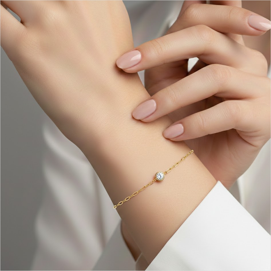 キュービックジルコニアを中央に配したシンプルブレスレット。