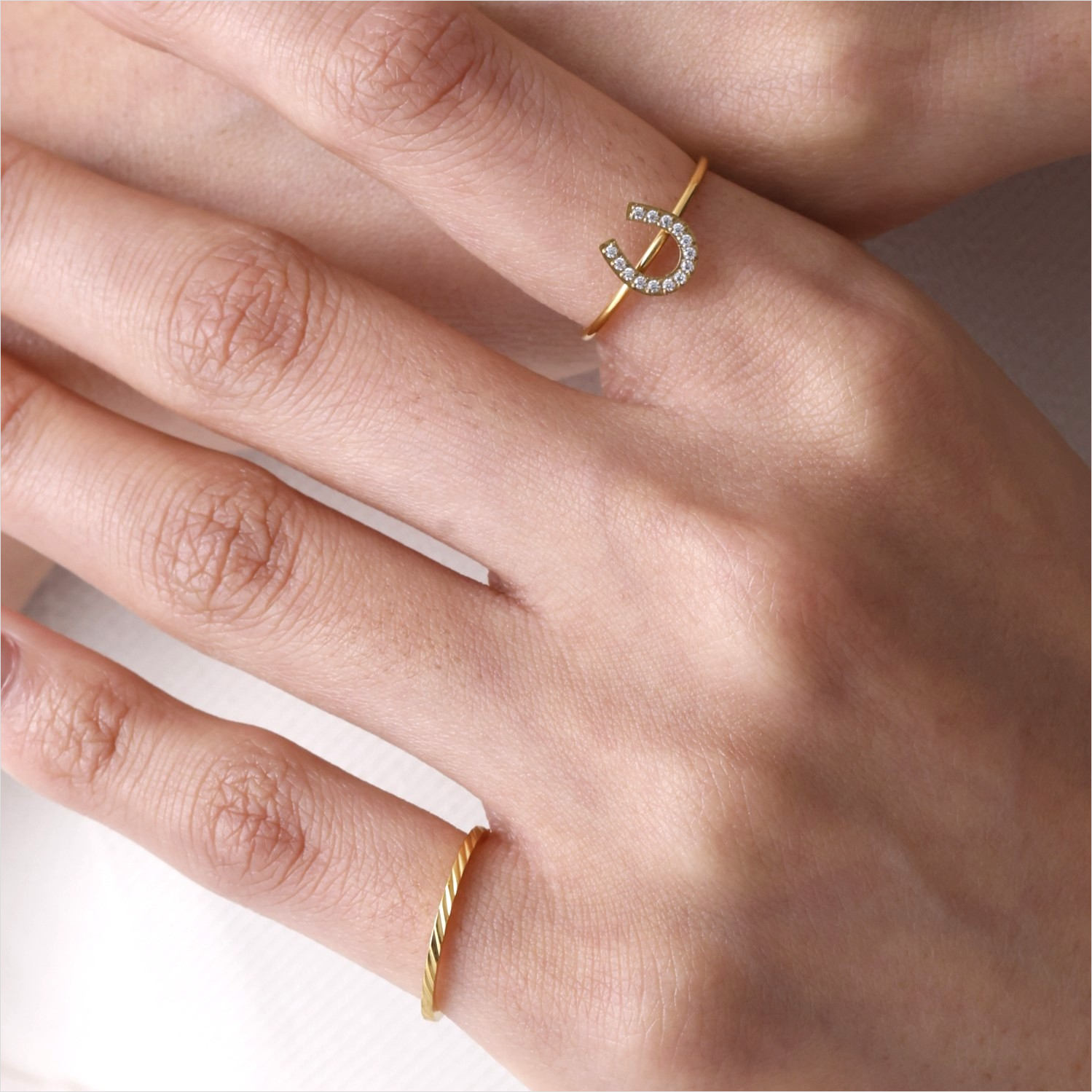 斜めにカットデザインが施されたデザインリング。
