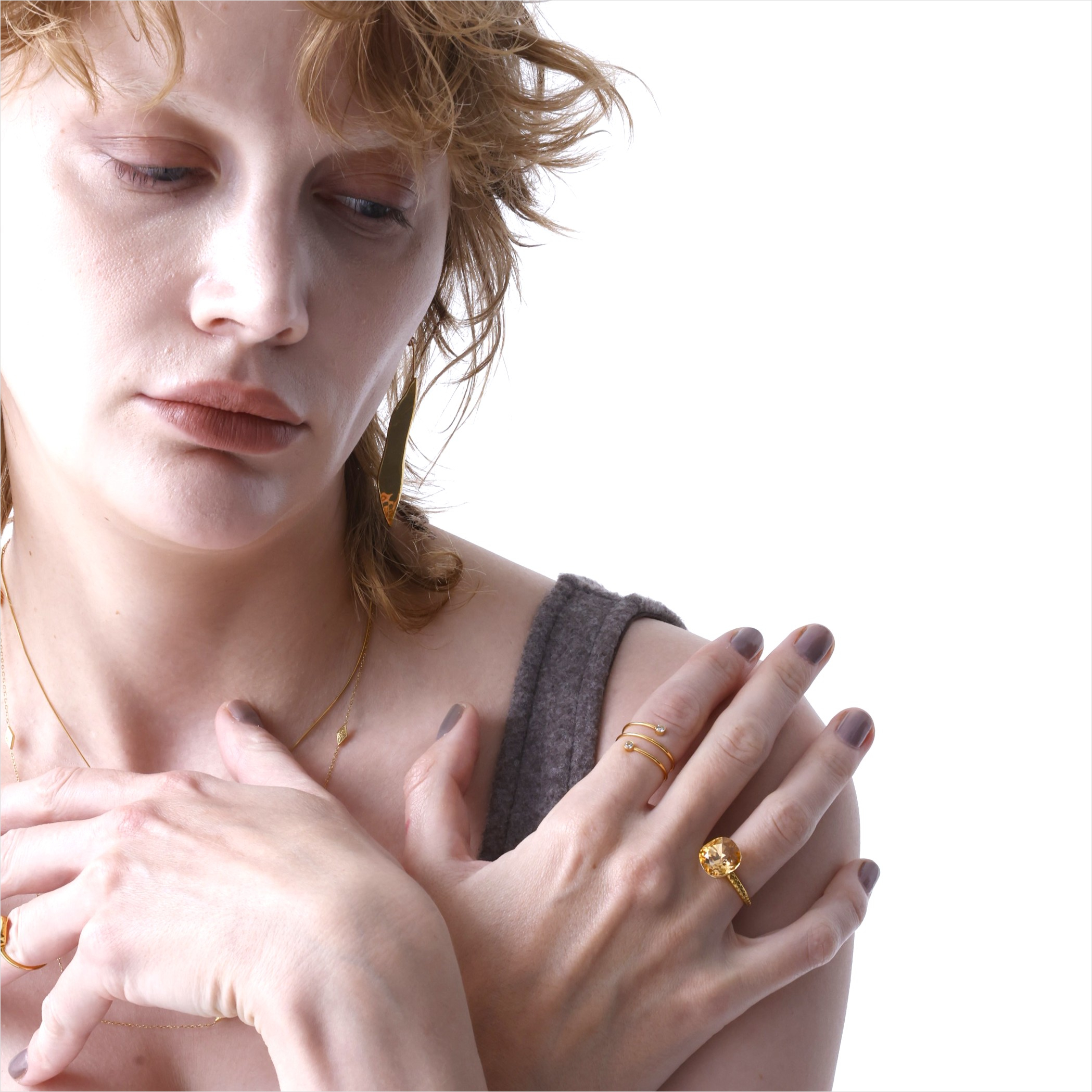スパイラルしたワイヤーが指先を華奢に演出し、エンドのビジューがポイントのおしゃれなリング。