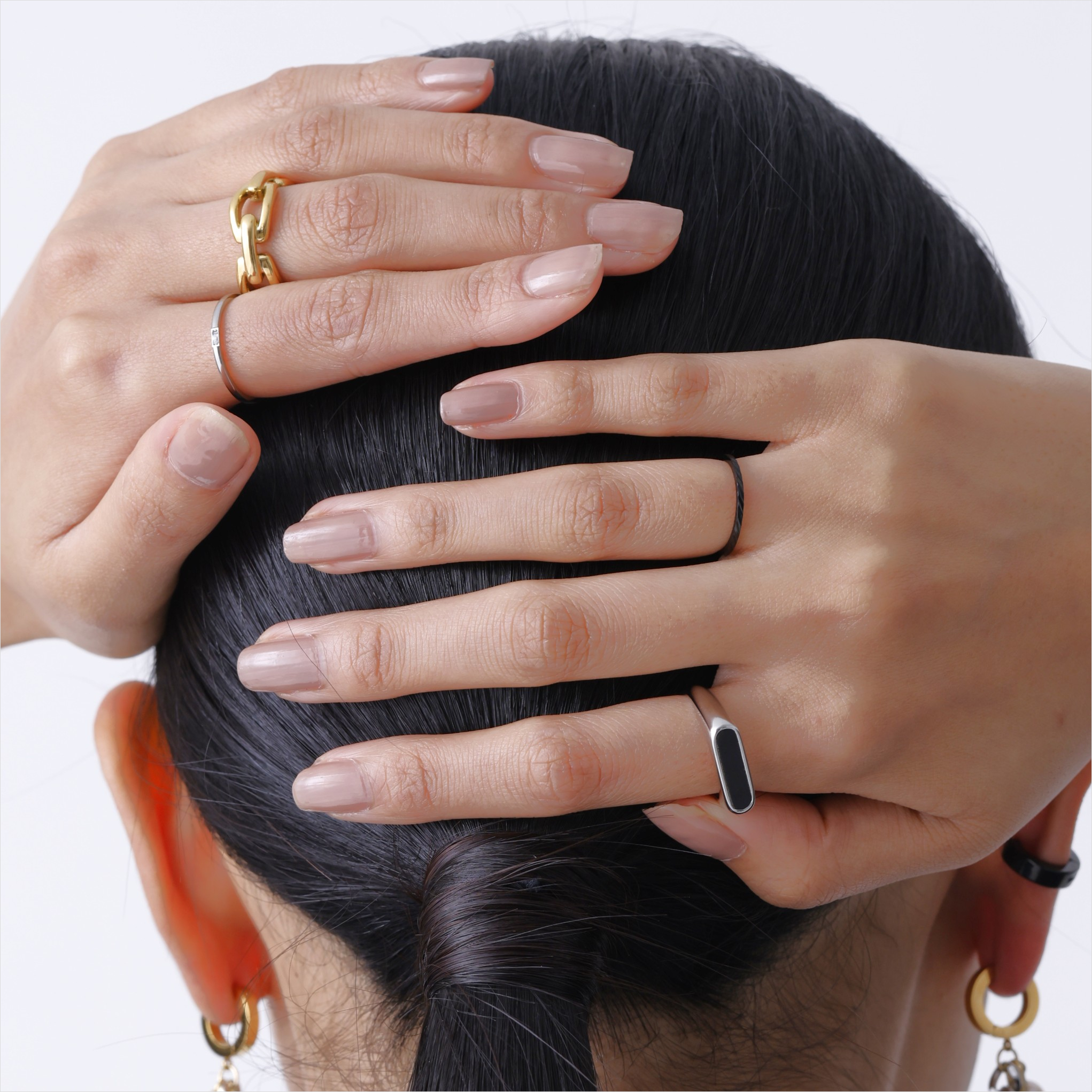 合わせるものを選ばないシンプルなビジューリング。